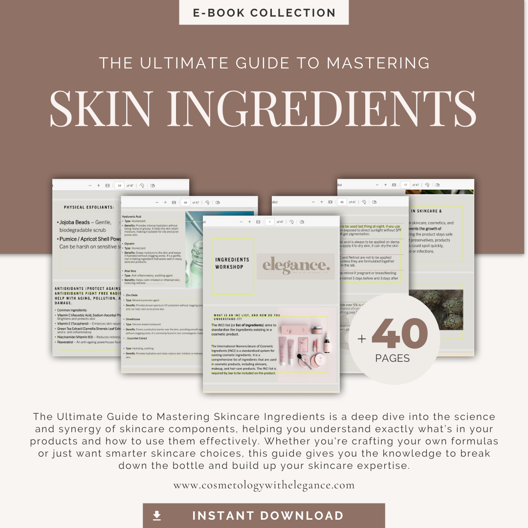 This comprehensive eBook is your go-to resource for understanding skincare ingredients. Perfect for skincare professionals, enthusiasts, and anyone interested in creating effective, safe, and high-performing products. Packed with actionable insights, this guide will empower you to take control of your skincare formulations.